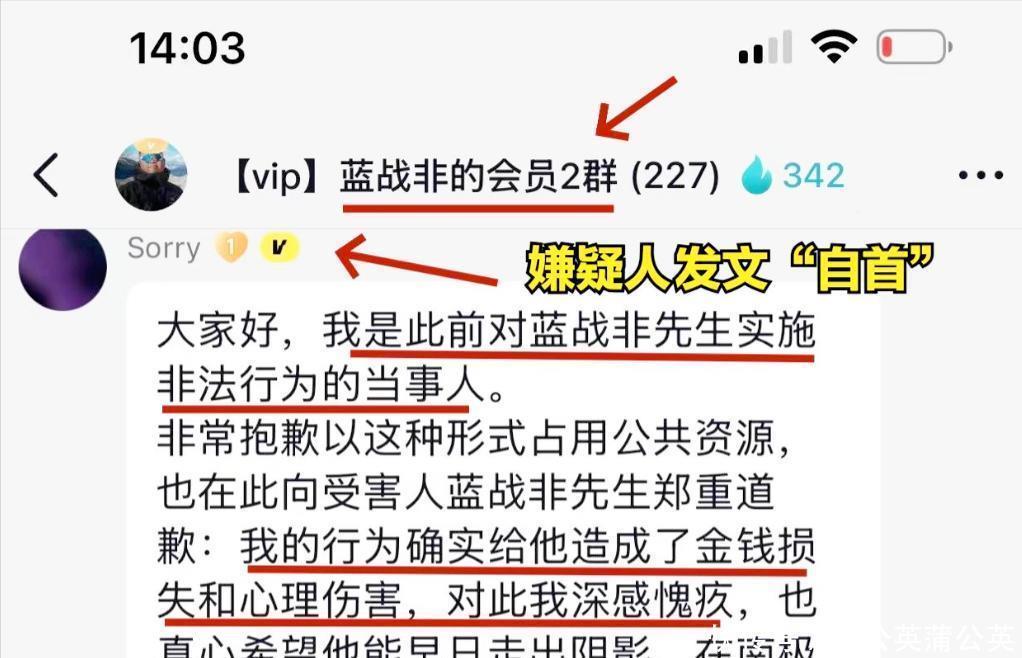 绑匪群里发长文,承认自己就是那个日晚上,蓝战非的会员群里炸了锅。一个网名叫"Sorry"的人突然现身,发了一大段文字,开头就是道歉,然后直接承认自己参与了绑架。