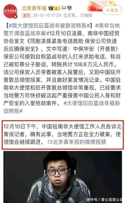 按正常逻辑,犯了这么大案子不应该躲得远远的吗?跑出来道歉是几个意思?真相到底是啥,谁都不敢下结论现在这案子就像一团乱麻。官方信息是确定的:南非中国经贸协会证实蓝战非被胁迫转.8万,当地警方已立案调查,中国大使馆在跟进。