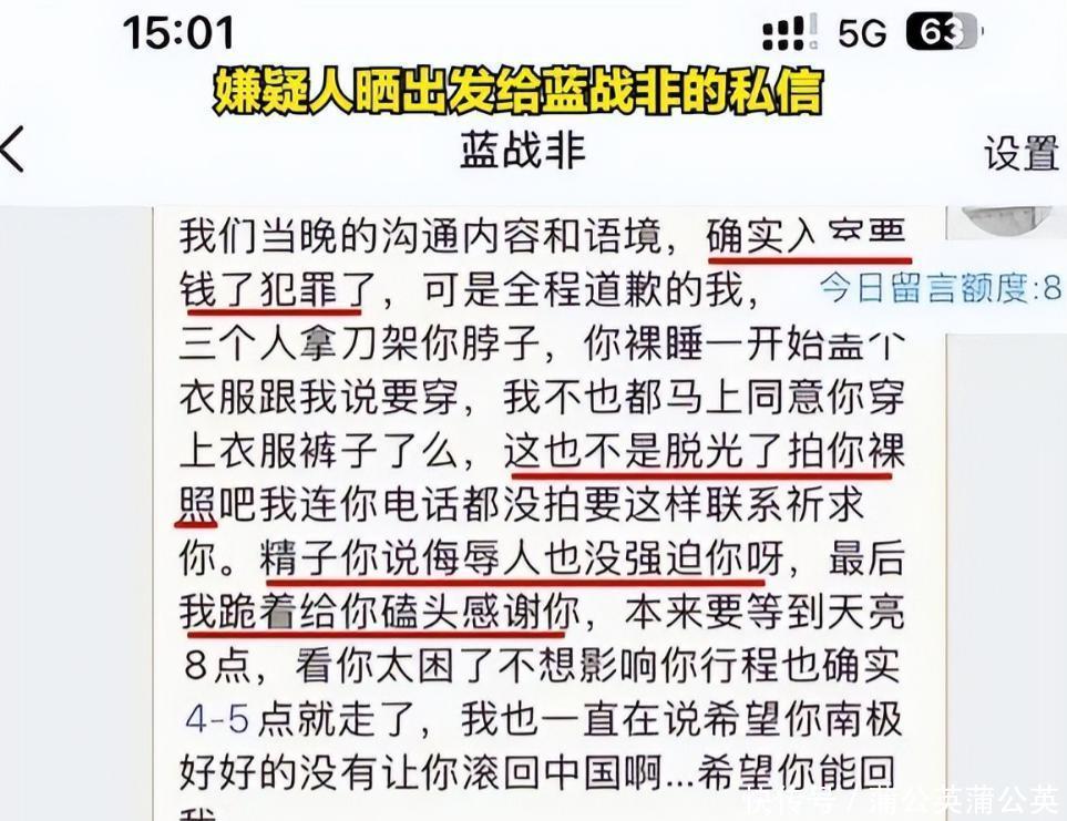 这年头绑匪都开始内卷了,抢完钱还主动跑来道歉?蓝战非南非绑架案刚过去两天,一个自称绑匪的人突然冒了出来,不仅晒转账截图,还说要给蓝战非下跪磕头。 这剧情,编剧都不敢这么写。